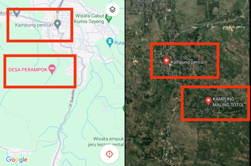 nusantaraterkini.co, JATENG - Warga daerah Sukolilo, Pati, Jawa Tengah (Jateng) belakangan ini heboh dengan penampakan kampung maling, kampung pencuri dan desa perampok di peta digital atau google maps.
