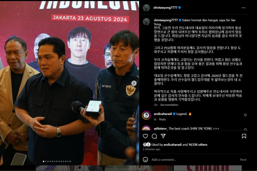 "Terakhir, saya ingin menyampaikan rasa terima kasih yang mendalam kepada seluruh rakyat Indonesia yang telah mencintai dan mendukung saya. Saya akan selalu mengenang kehangatan dan dukungan yang telah kalian berikan kepada saya," ucap eks pelatih Seongnam Ilhwa Chunma itu. (rsy/nusantaraterkini.co)