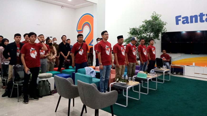 Mereka menamakan diri sebagai Tim Relawan Hasanuddin Muda Prabowo-Gibran serta mendeklarasikan dukungan di Fanta HQ, Markas Tim Kampanye Nasional (TKN) Pemilih Muda atau TKN Fanta Prabowo-Gibran, Menteng, Jakarta, Jumat (5/1/2024).