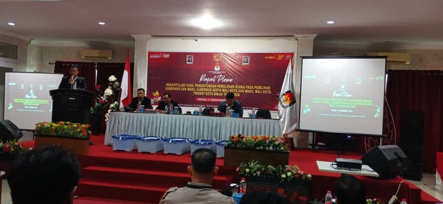 Nusantaraterkini.co, BINJAI - KPU Kota Binjai telah menyelesaikan rekapitulasi hasil penghitungan perolehan suara pada pemilihan Gubernur dan Wakil Gubernur Sumatera Utara serta Wali Kota dan Wakil Wali Kota Binjai periode 2024-2029 yang digelar di Hotel Kardopa, Kecamatan Binjai Kota, Kota Binjai, Sumatera Utara, Rabu (4/12/2024).