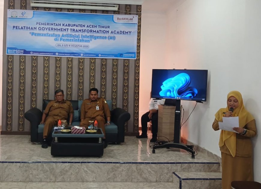 Nusantaraterkini.co, ACEHTIMUR - Bupati Aceh Timur Iskandar Usman Al-Farlaky, SHI., MSi diwakili Plt Sekretaris Daerah (Sekda) Adlinsyah, S.Sos., M.AP membuka Pelatihan Goverment Transformation Academy, di Aula Badan Kepegawaian dan Pengembangan Sumber Daya Manusia (BKPSDM), setempat, Selasa (5/8/2025).