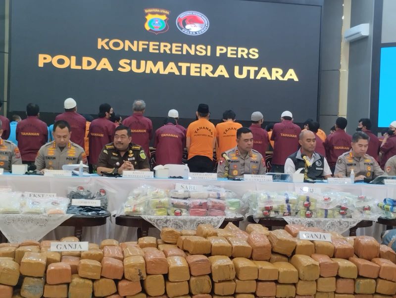 “Sejak saya dilantik, arahan Presiden dan Kapolri jelas, pemberantasan narkoba harus dilakukan bersama-sama. Kami mohon dukungan seluruh masyarakat untuk memerangi narkoba,” tegasnya dalam konferensi pers di Aula Tri Brata Mapoldasu, Selasa (24/2/2026).