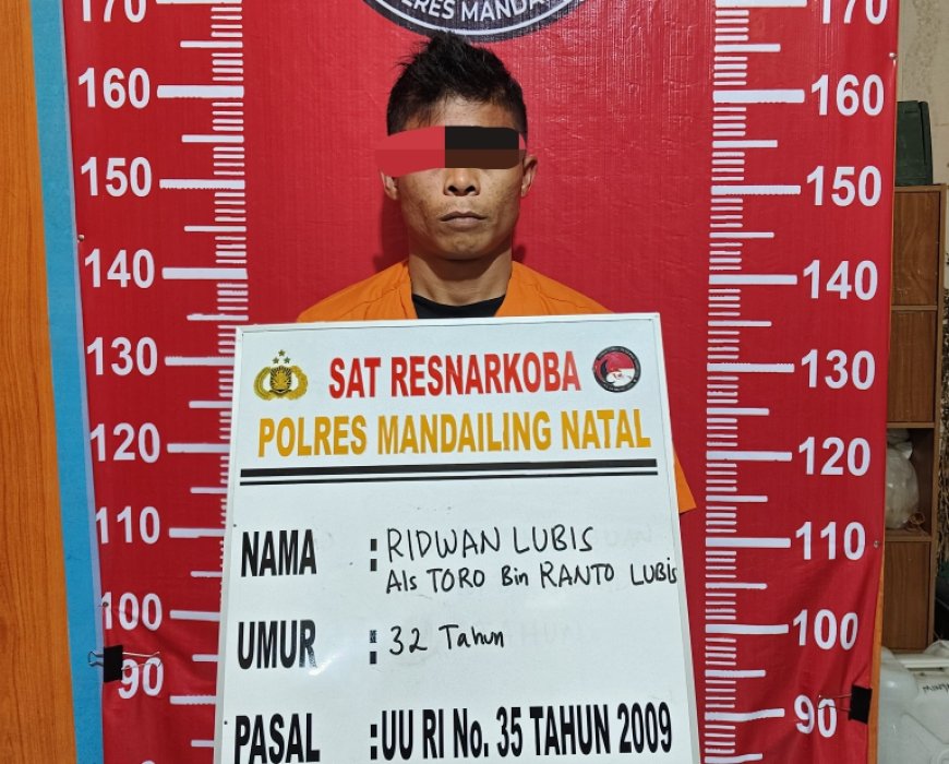 Nusantaraterkini.co, MADINA - RL alias Toro (31) warga Lingkungan II, Banjar Silangit, Kelurahan Kotasiantar, Kecamatan Panyabungan, ditangkap Tim Opsnal Satuan Reserse Narkoba Polres Mandailing Natal (Madina) akibat memiliki narkotika jenis ganja, Minggu (22/6/2025).