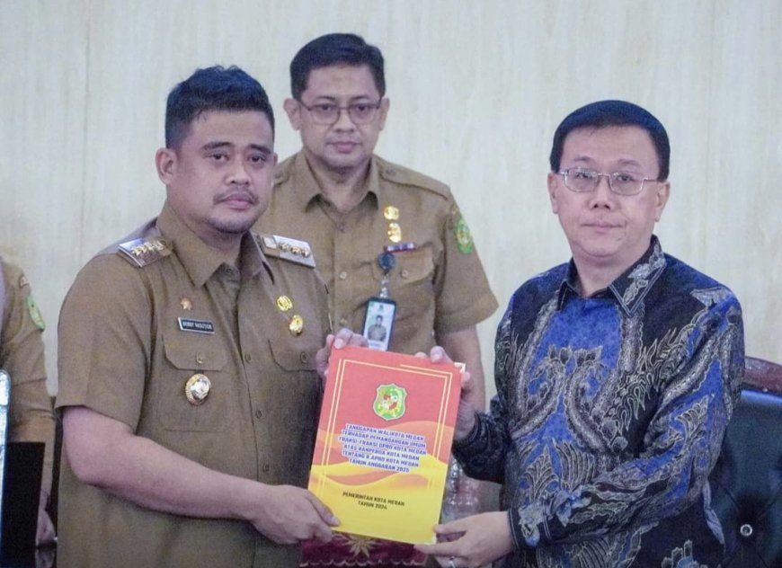 Demikian disampaikan Wali Kota Medan Bobby Nasution menanggapi Pemandangan Umum Fraksi PDI Perjuangan DPRD Kota Medan, terkait pelaksanaan parkir berlangganan dalam Paripurna Tanggapan Wali Kota Medan Terhadap Pemandangan Umum Fraksi DPRD Kota Medan Atas Ranperda Kota Medan tentang R.APBD Kota Medan Tahun Anggaran 2025 di Gedung DPRD Medan, Senin (26/8/2024).