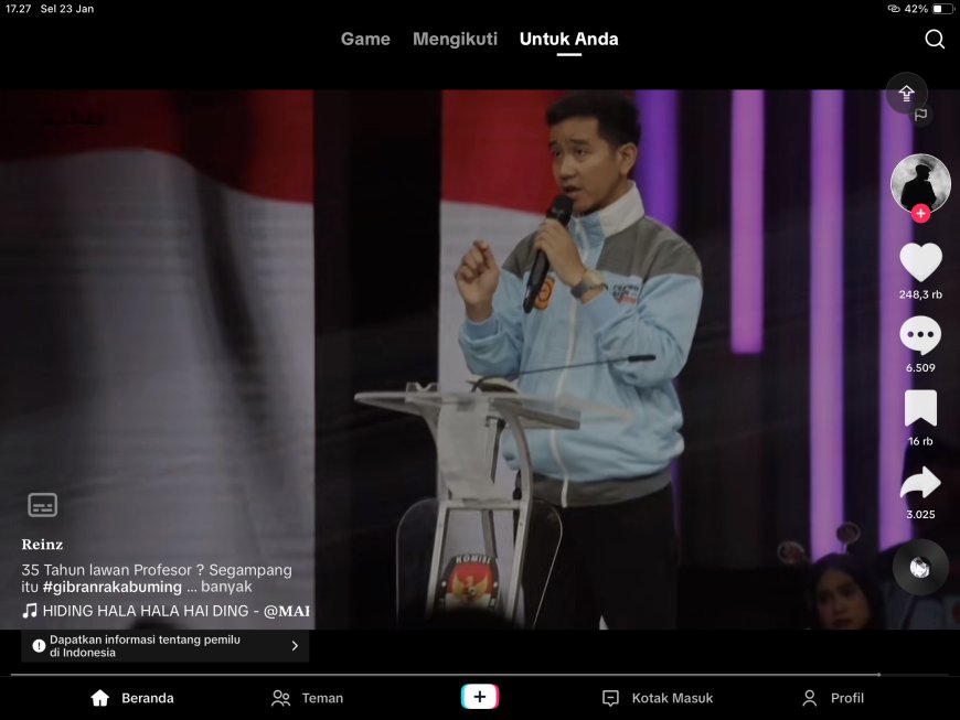 Video Bambang Ekoloyo Butet Kartaredjasa yang merupakan seorang aktor dan pembawa acara Indonesia ini diunggah pemilik akun tiktok Reinz. Di mana cuplikan video tersebut ditampilkan saat Gibran dan Mahfud MD bertiktokan saat debat Cawapres di Jakarta Convention Center (JCC), Jakarta Pusat, Minggu (21/1/2024) kemarin.