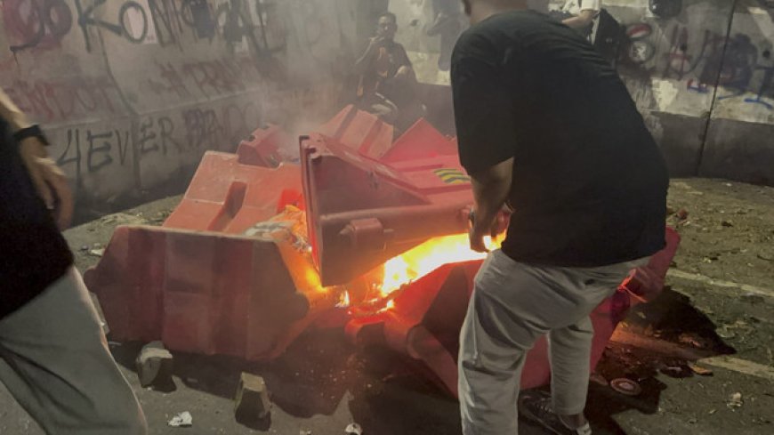 Pukul 19.29 WIB, demo semakin memanas. Peserta aksi terlihat membakar sejumlah barrier plastik yang dipakai polisi untuk menutup Jalan Medan Merdeka Barat.
