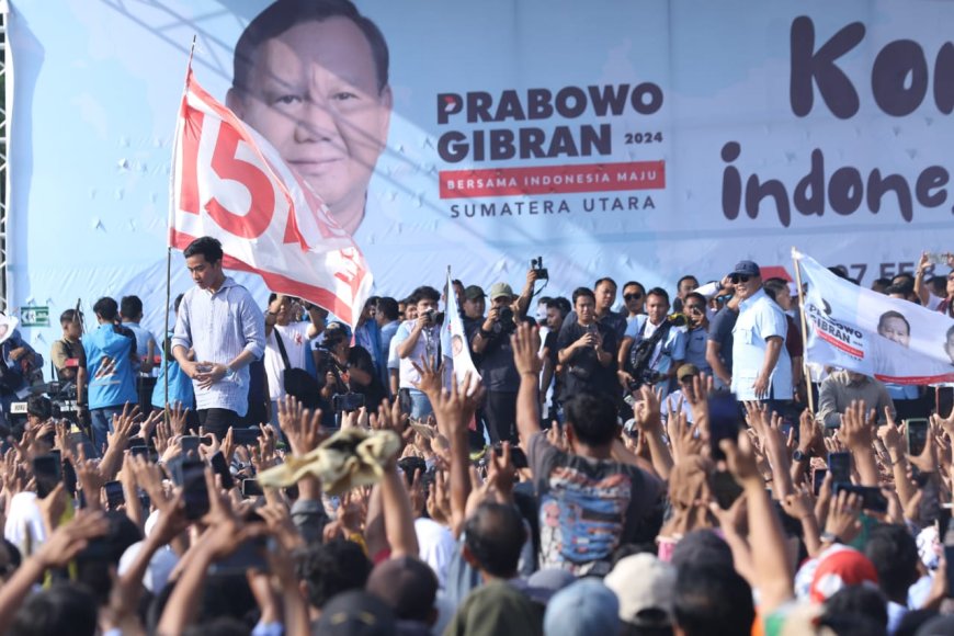 Nusantaraterkini.co, DELI SERDANG - Pasangan calon presiden nomor urut 2 Prabowo Subianto dan Gibran Rakabuming Raka menghadiri konser Indonesia maju (KIM) di Stadion Baharoeddin Siregar, Kabupaten Deli Serdang, Sumatera Utara, Rabu (7/2/2024).