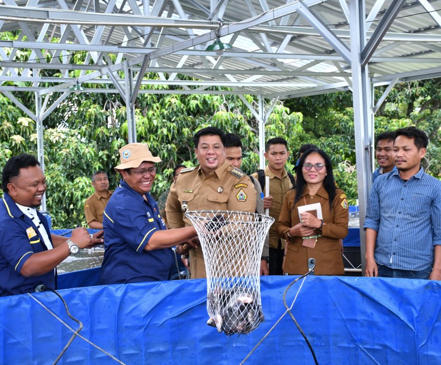 Kelompok Pembudidaya Ikan (Pokdakan) Mekar yang melakukan budidaya ikan nila berbuah manis dan melakukan panen perdana lansung bersama Bupati Samosir di Desa Sitoluhuta, Kecamatan Pangururan, Selasa (25/3/2025).