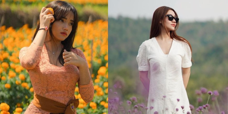 Pada foto tersebut, Fuji mengenakan kebaya warna peach selayaknya gadis Bali di tengah taman bunga gemitir.