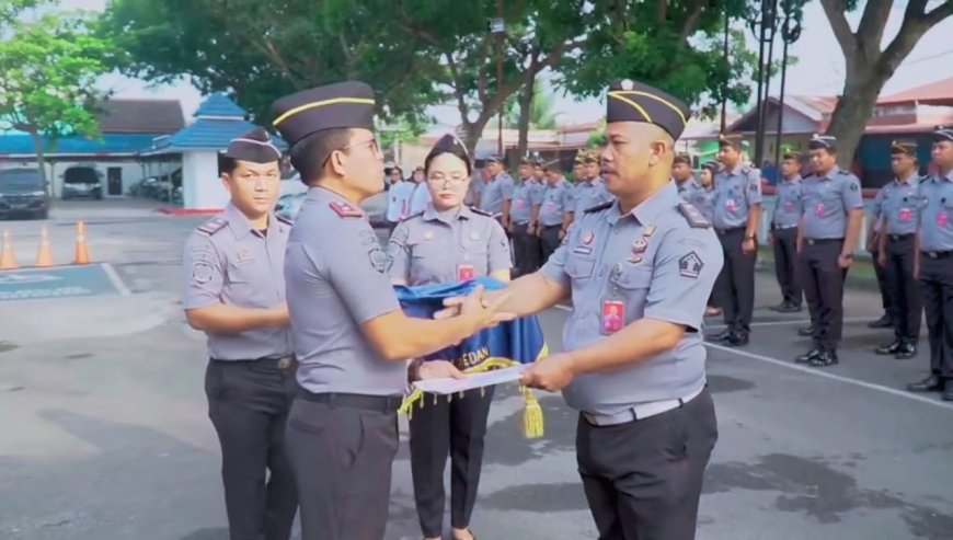 Atas keberhasilan itu, Petugas Rutan Darwin Simamora diganjar penghargaan oleh Kepala Rumah Tahanan Kelas 1 Medan, Nimrot Sihotang, saat Apel pagi di Rutan Kelas 1 Medan, Senin (27/5/2024).