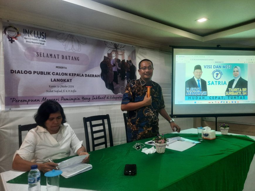 Dalam acara dialog publik calon kepala daerah Langkat dengan tema “Perempuan Mencari Pemimpin yang Inklusif di Kabupaten Langkat“ itu, Surkani meyakinkan para peserta untuk tidak ragu dalam memilih calon pemimpin Langkat pada 27 November 2024 nanti.