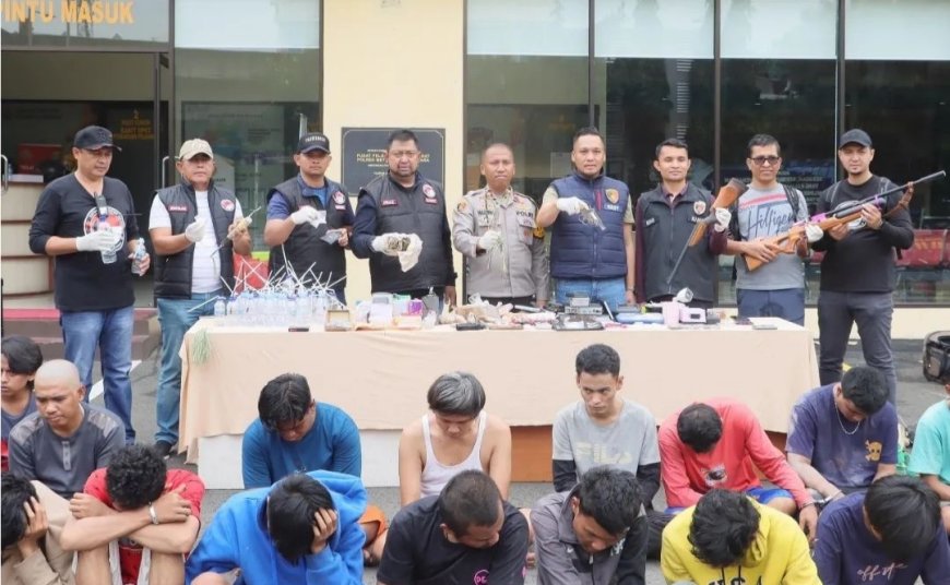 Selain itu, petugas juga mengamankan masing-masing satu unit senjata api rakitan, air gun, senapan angin, granat asap dan ketapel beserta anak panah hingga 11 tabung karbon dioksida. Selanjutnya, 15 unit timbangan digital, tiga unit recorder, belasan bong bekas pakai dan empat unit sepeda motor.