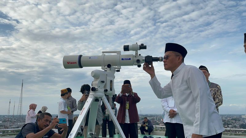 Berdasarkan hasil pengamatan teknis, matahari terbenam pada pukul 18.21 WIB, sementara hilal terpantau berada pada ketinggian minus 1 derajat 14 menit 5 detik dengan sudut elongasi 1,19 derajat.