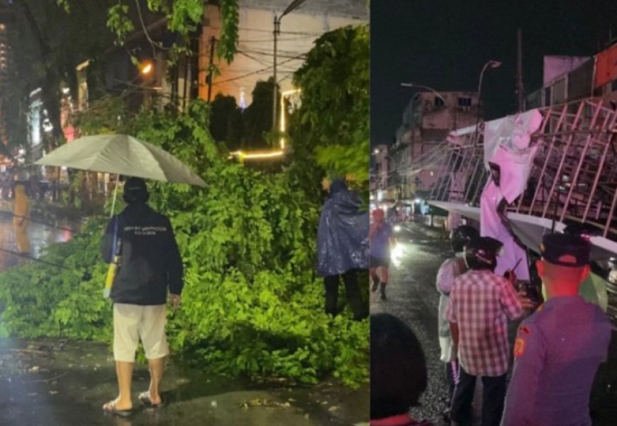 Sementara, Nadila, Kepala lingkungan 7, Kelurahan Petisah ujung, Kecamatan Medan Baru, Kota Medan, mengatakan, pohon tumbang dan papan reklame rubuh terjadi saat hujan disertai angin kencang.