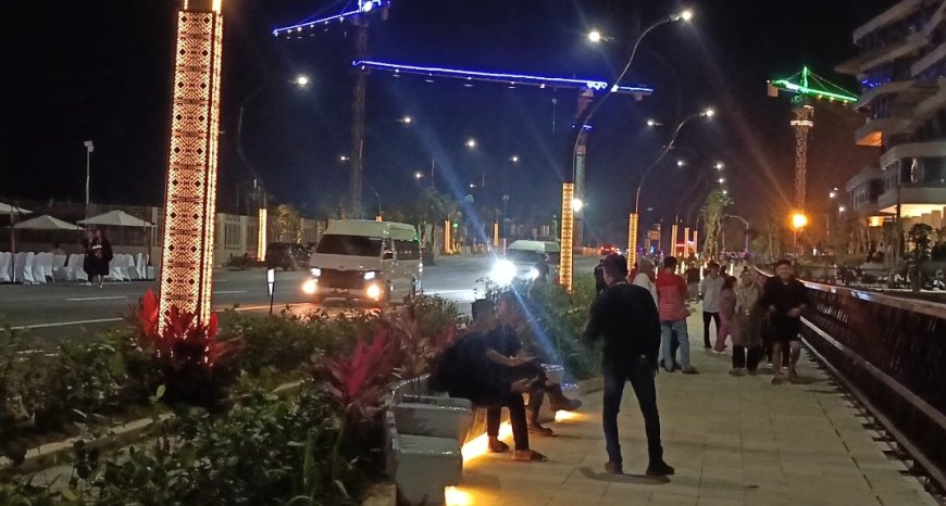 Nusantaraterkini.co, IKN - Suasana di Ibu Kota Nusantara (IKN) usai upacara 17 Agustus 2024, pada malam hari ini ramai dipadati warga.