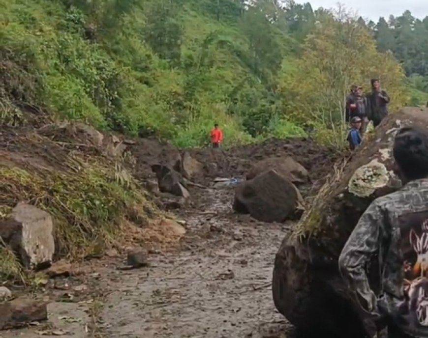 Sony menambahkan, sampai saat ini akses belum bisa dilalui, namun warga setempat bekerjasama menggunakan alat seadanya membersihkan material longsor.