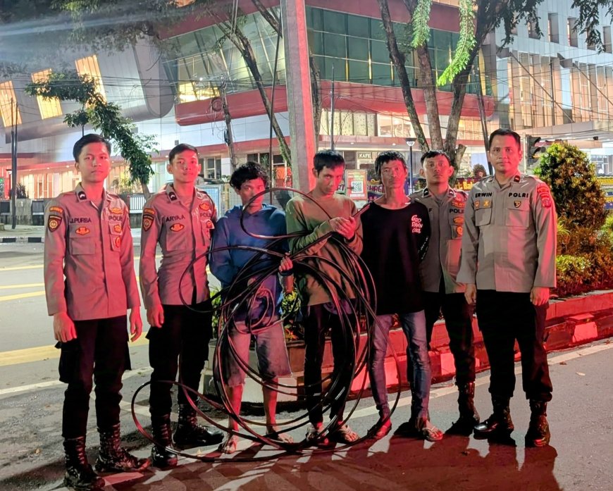 Nusantaraterkini.co, MEDAN - Tim Patroli Presisi Satsamapta Polrestabes Medan mengamankan tiga pelaku pencurian kabel Telkom yang ada di Jalan Kapten Maulana Lubis, tepatnya di depan Wisma Benteng, Sabtu (14/12/2024) sekitar pukul 03.16 WIB.