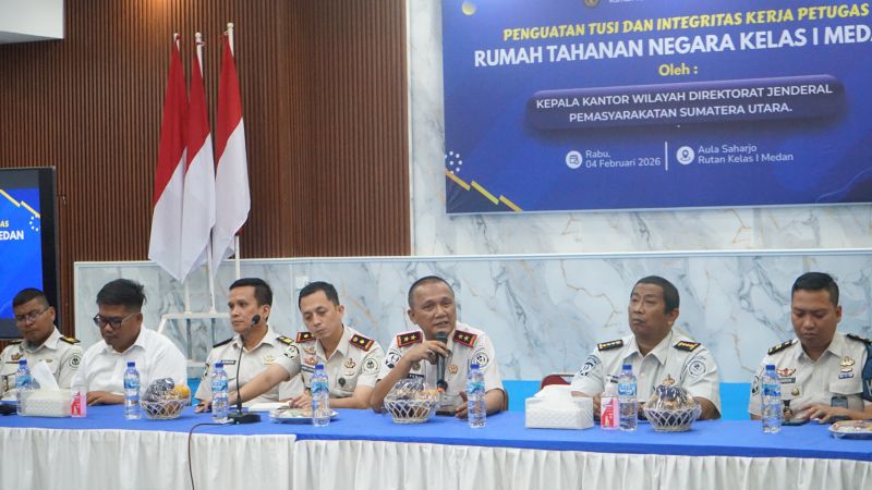 Nusantaraterkini.co, MEDAN - Rumah Tahanan Negara (Rutan) Kelas I Medan menerima penguatan dari Kepala Kantor Wilayah Direktorat Jenderal Pemasyarakatan Sumatera Utara, Yudi Suseno, terkait pentingnya integritas, profesionalisme dan kesiapsiagaan petugas pengamanan, Rabu (4/2/2026).