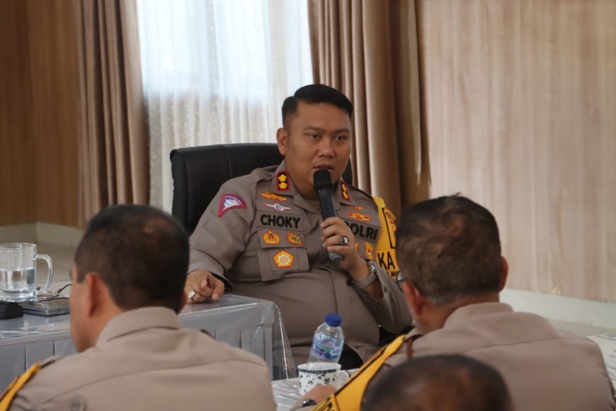 Dalam kesempatan tersebut, Kapolres Simalungun AKBP Choky Sentosa Meliala memberikan arahan kepada seluruh peserta rapat untuk terus meningkatkan kewaspadaan dan kesiapsiagaan dalam menghadapi berbagai tantangan tugas kepolisian di tahun 2025.