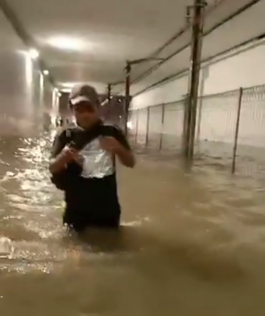 "Airnya lumayan tinggi, sampai selutut dan deras," katanya.