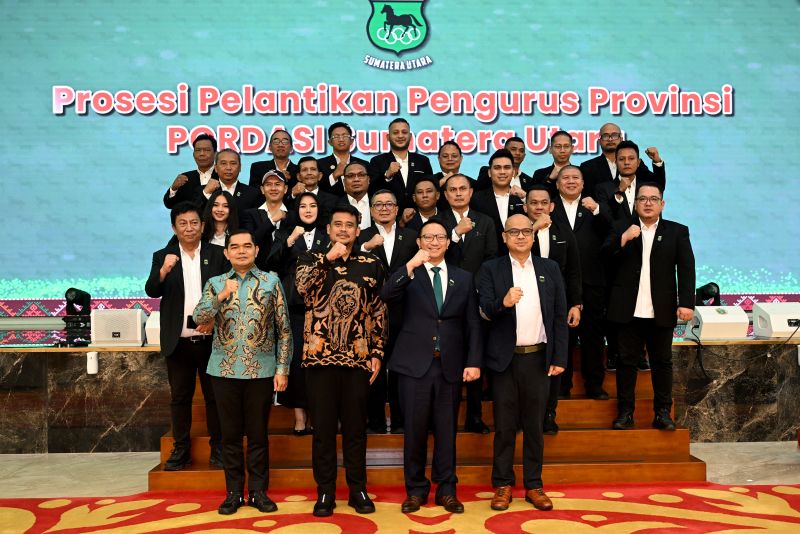Nusantaraterkini.co, MEDAN - Ketua Umum Pengurus Pusat Persatuan Olahraga Berkuda Seluruh Indonesia (PP Pordasi) Aryo PS Djojohadikusumo resmi melantik Pengurus Provinsi (Pengprov) Pordasi Sumatera Utara periode 2025-2029, di Aula Raja Inal Siregar, Lantai 2, Kantor Gubernur Sumatera Utara, Minggu (24/8/2025) malam.