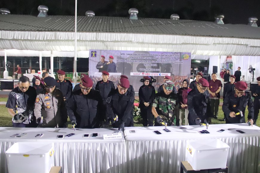Nusantaraterkini.co, JAKARTA - Komitmen Lembaga Pemasyarakatan (Lapas) Kelas I Cipinang dalam mewujudkan Zero Halinar diwujudkan dengan menjadi tuan rumah Apel Siaga dan Penandatanganan Komitmen Bersama Zero Halinar (handphone, pungli, narkoba) pada Kamis (10/10/2024).