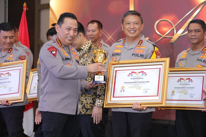 Penghargaan tersebut diserahkan langsung oleh Kapolri Jenderal Pol Listyo Sigit Prabowo kepada Kapolda Sumut Komjen Pol Agung Setya Imam Effendi, Rabu (17/7/2024) malam di Jakarta.