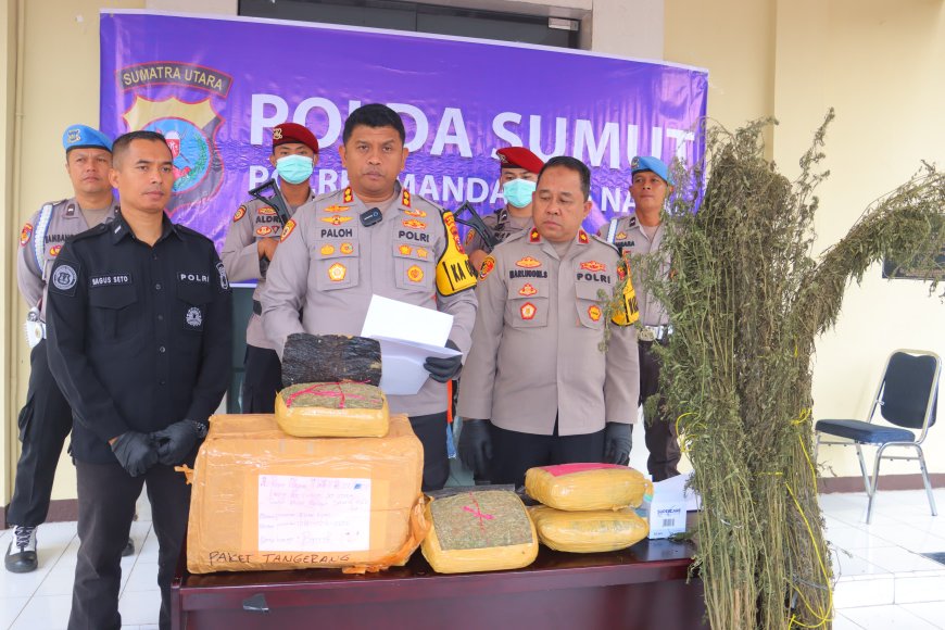 Kurir ganja itu berinisial PH (22), warga Kelurahan Kotasiantar, Kecamatan Panyabungan dan barang bukti 5,3 Kilogram (Kg) daun ganja dibungkus lakban lima paket di dalam kardus berhasil disita di loket bus tersebut.