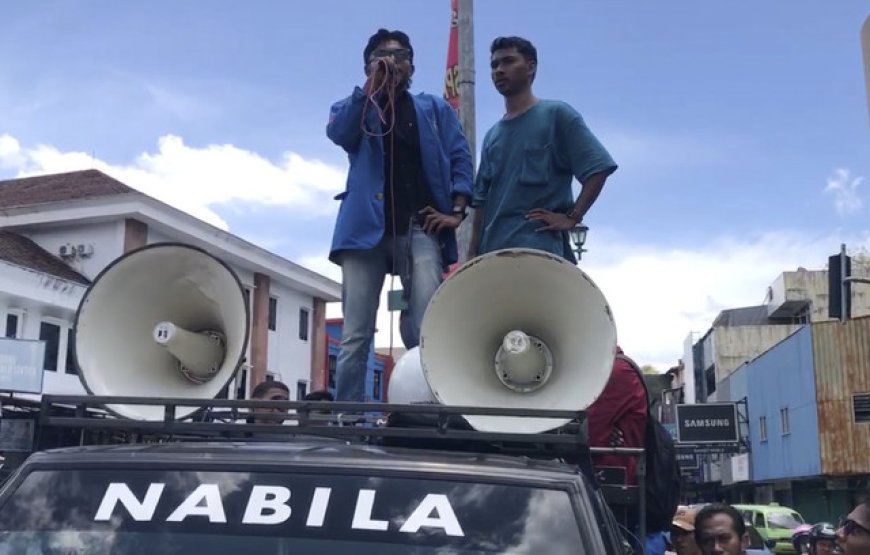 nusantaraterkini.co, AMBON - Sejumlah mahasiswa di Kota Ambon menggelar aksi unjuk rasa di pertigaan jalan, tepatnya di depan kantor Polsek Sirimau, Kamis (20/2/2025) sejak pukul 10.00 WIT.