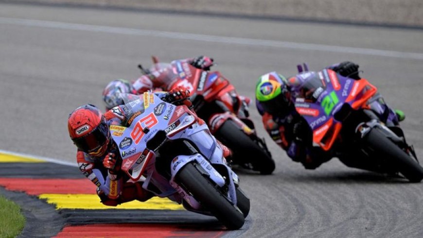 Nusantaraterkini.co - Marc Marquez finis kedua MotoGP Jerman 2024 pada Minggu (7/7) dengan kondisi layar motor pecah, airbag mengembang, tulang rusuk sakit, jari patah, start dari posisi ke-13, dan dua kali bersenggolan yang nyaris membuatnya kecelakaan.