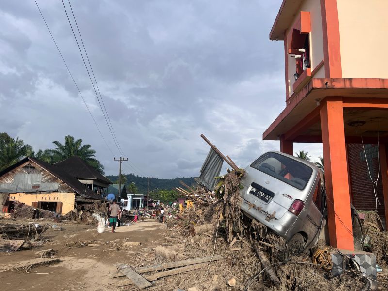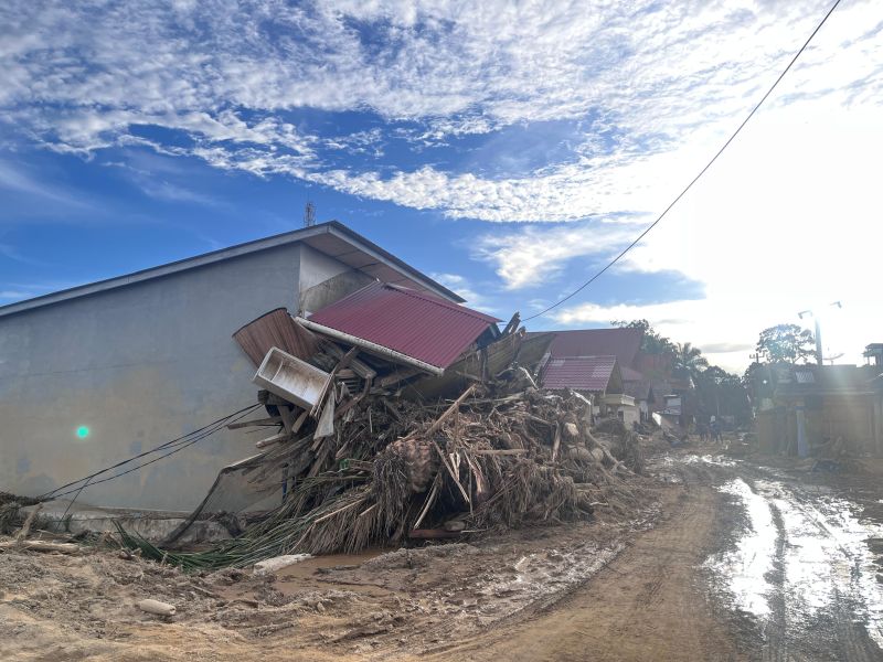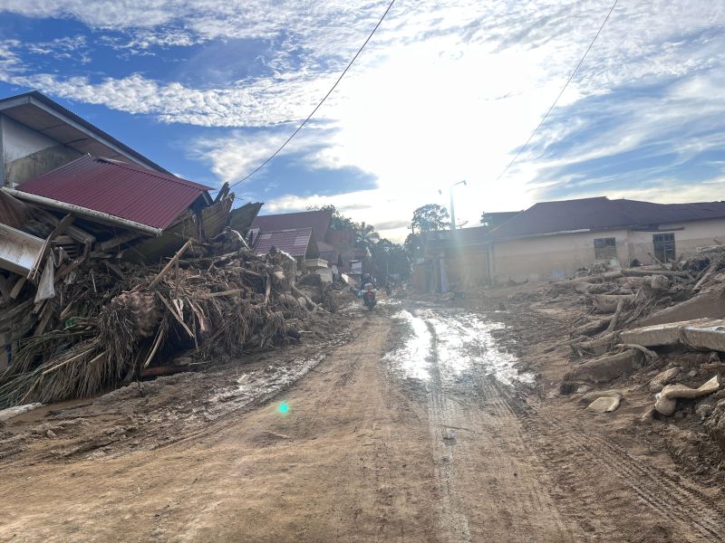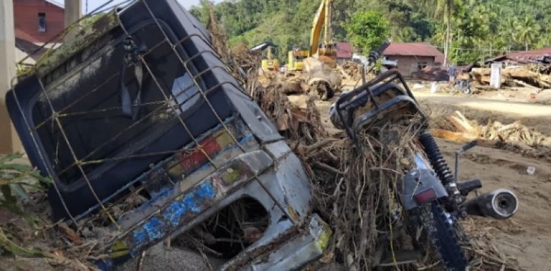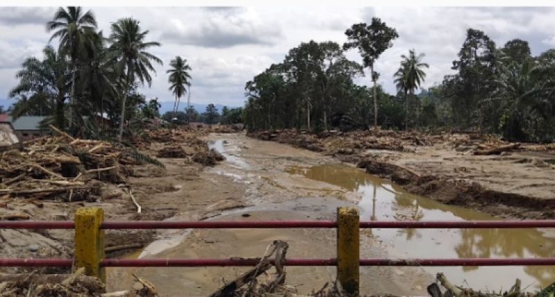 Kondisi dahsyatnya dampak bencana banjir dan longsor di Desa Garoga, Kecamatan Batang Toru, Kabupaten Tapanuli Selatan, Senin (1/12/2025). (Foto: Nusantaraterkini.co)