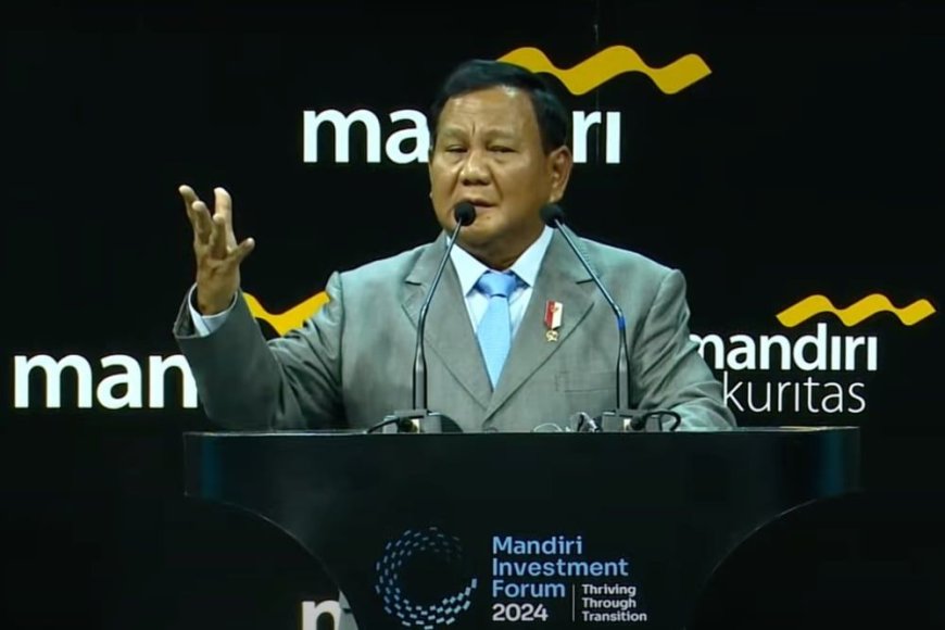 Nusantaraterkini.co - Menteri Pertahanan Prabowo Subianto menghadiri Mandiri Investment Forum di Hotel Fairmont Senayan Jakarta. Prabowo disinggung miliki utang dengan Bank Mandiri. Ia lantas mengakui sudah melunasi 100 persen utang tersebut saat menjadi klien di PT Bank Mandiri (Persero) Tbk.