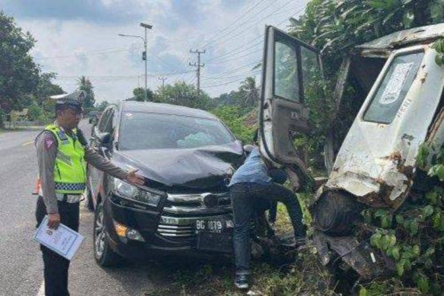 nusantaraterkini.co, LAMPUNG SELATAN - Satu unit mobil rombongan Paspampres alami kecelakaan saat berada di Jalan Lintas Sumatera, Desa Sukabaru, Kecamatan Penengahan, Lampung Selatan. Mobil tersebut menabrak truk rongsok.