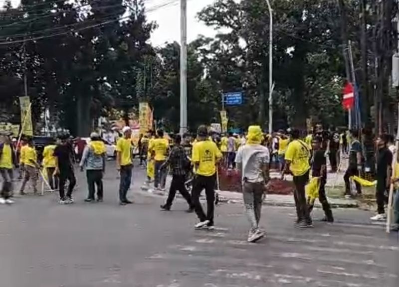 Petugas kepolisian yang berjaga langsung bergerak cepat mengendalikan situasi. Meski begitu, kedua kelompok massa yang diduga berasal dari organisasi sayap Golkar itu tetap saling kejar membawa kayu.