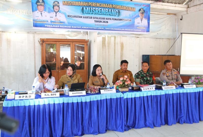 Nusantaraterkini.co, PEMATANGSIANTAR-Musyawarah Perencanaan Pembangunan (Musrenbang) Kecamatan Siantar Sitalasari dalam rangka penyusunan Rencana Kerja Pemerintah Daerah (RKPD) Kota Pematangsiantar Tahun 2027 resmi dibuka, Selasa (10/2/2026). Acara yang berlangsung di Kantor Camat Siantar Sitalasari diwakili pembukaan oleh Staf Ahli Bidang Pemerintahan Dra Happy Oikumenis Daely, yang menyampaikan amanat dari Wali Kota Pematangsiantar Wesly Silalahi SH MKn.