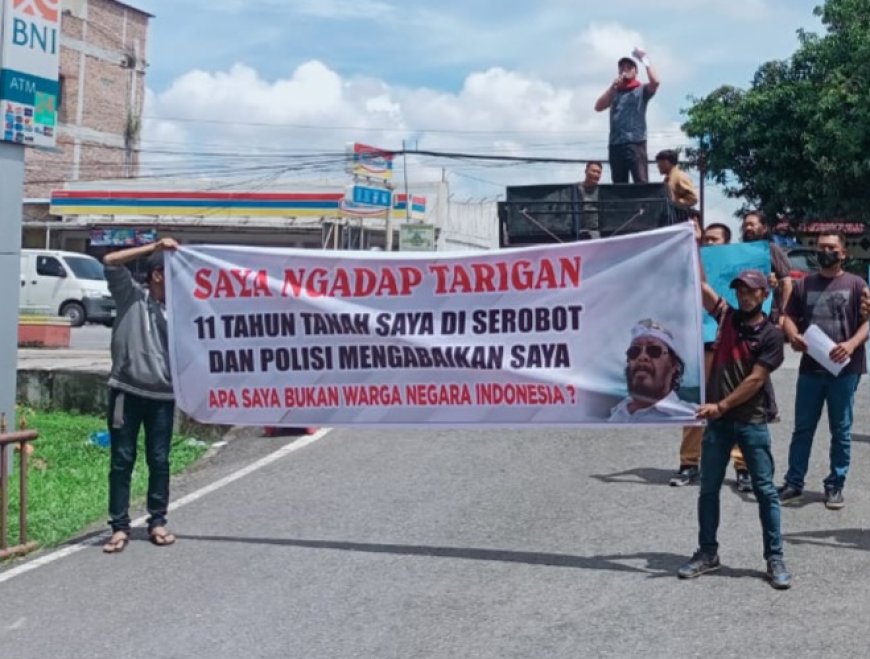 Nusantaraterkini.co, MEDAN – Ngadap Tarigan (70) bersama sejumlah warga Desa Siboras Rakut Besi, Kabupaten Simalungun, menggelar aksi unjuk rasa di Mapolda Sumatera Utara (Sumut) pada Senin (7/10/2024).
