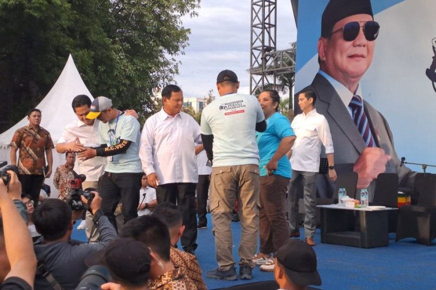 Perwakilan Ojol ET, Dito menyampaikan langsung permintaan itu kepada Prabowo dan Erick Thohir di atas panggung di Lapangan Banteng, Jakarta Pusat, Jumat (19/1/2024).