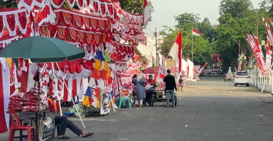 Pantauan Nusantaraterkini.co, deretan bendera merah putih berbagai ukuran, umbul-umbul, dan pernak-pernik kemerdekaan dijajakan di tepi jalan. Namun, dibandingkan tahun lalu, jumlah pedagang tampak berkurang.