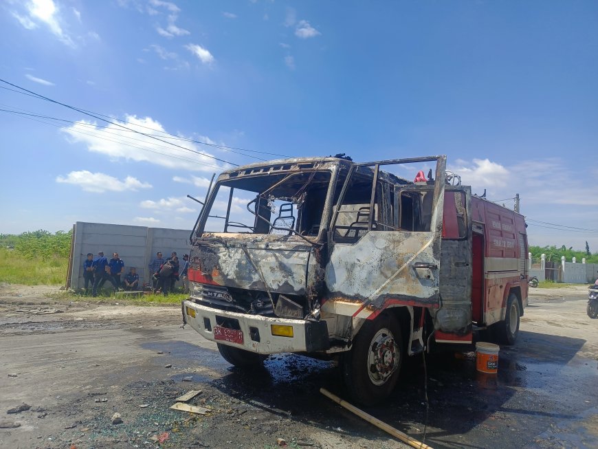 Warga pun membakar ban di Jalan H Anif dan melempari petugas dengan batu. Satu unit mobil petugas pemadam kebakaran juga dibakar massa.
