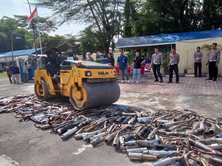 Nusantaraterkini.co, BINJAI - Sat Lantas Polres Binjai, menggelar pemusnahan barang bukti knalpot brong, dihalaman Satlantas, Jalan S Hasanuddin, Kelurahan Satria, Kecamatan Binjai Kota.