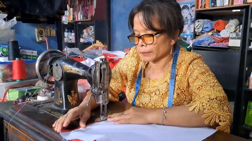 Meskipun mengalami penurunan pesanan hingga 30 persen, Mak Ivo yang meneruskan usaha menjahit bendera skala rumahan dari warisan ayahnya ini pun tetap bersemangat memproduksi setiap helai kain untuk dijadikan bendera Merah putih berbagai ukuran.