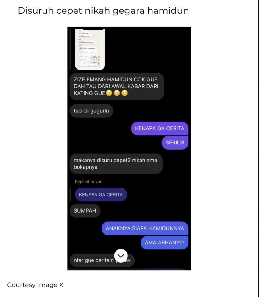 "Udah ditalak 3 bestie sama Arhan. Tolong hide uname sama PP (photo profile) aku ya min," bunyi pesan dari warganet yang membocorkan perceraian Azizah Salsha dan Pratama Arhan.
