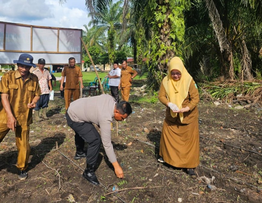 Nusantaraterkini.co, PALAS - Dalam rangka mendukung program ketahanan pangan (Ketapang), Kapolsek Barumun Tengah (Barteng) Iptu Elimawan Sitorus bersama Forkopimcam, tokoh masyarakat dan tokoh agama melakukan penanaman dan penaburan bibit ikan di Lahan Ketapang, Polsek Barteng, Senin (18/11/2024) sore.