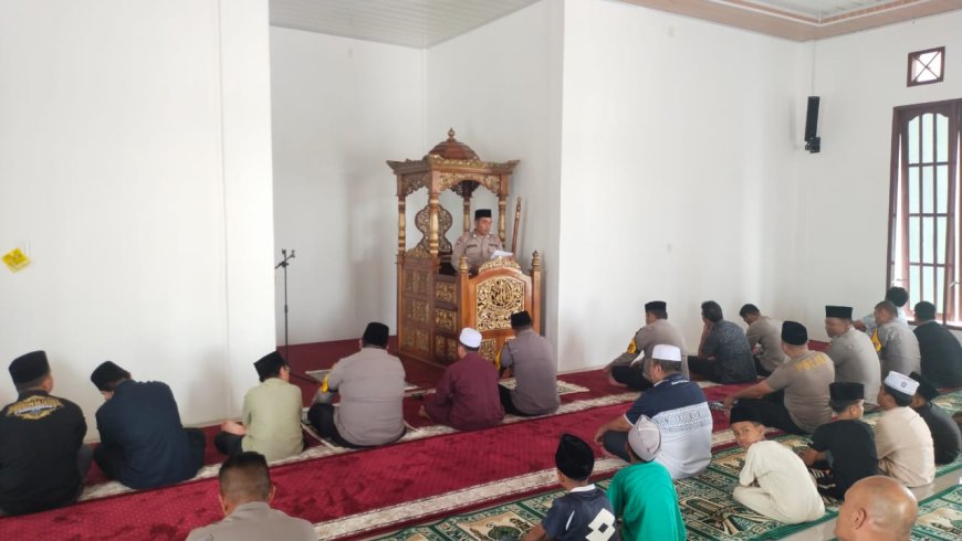 Nusantaraterkini.co, PALAS - Personel Sat Binmas Polres Padang Lawas (Palas) Bripka Lukman Hakim Hasibuan mengisi Khutbah Sholat Jumat dengan tema "Menyikapi Tahun Baru 2025" di Mesjid Al Amanah, Jumat (3/1/2025).