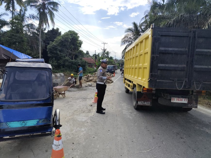 Nusantaraterkini.co, PALAS - Personel Sat Lantas Polres Padang Lawas melaksanakan pengaturan dan live raport di jalan lintas riau bulu sonik, tepatnya di lokasi perbaikan jembatan dalam rangka Operasi Lilin Tahun 2024, Minggu (29/12/2024).