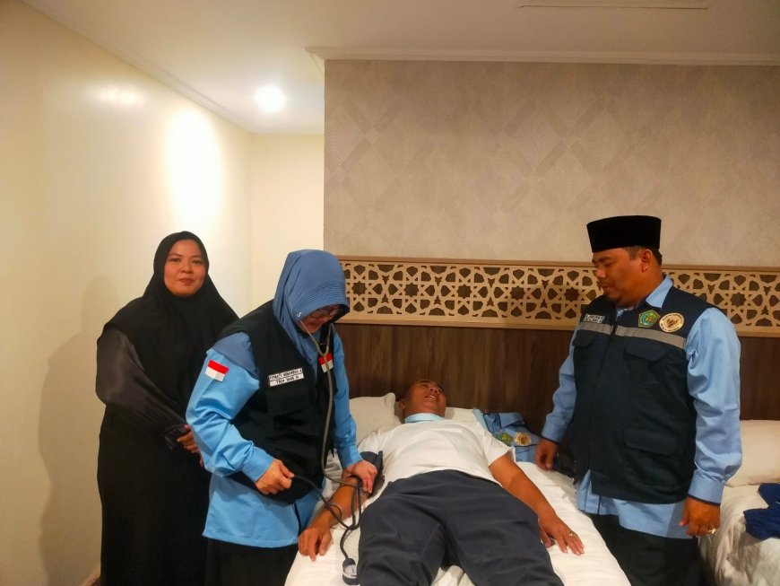 Nusantaraterkini.co, MEDAN - Untuk menjaga kebugaran dan kesehatan seluruh jemaah haji Kloter 9 Embarkasi Medan (KNO), seluruh petugas fokus mengecek semuanya.