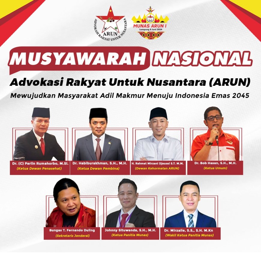 Nusantaraterkini.co, MEDAN - Jelang digelarnya Musyawarah Nasional (Munas) pada 8 Juni 2024 mendatang, Advokasi Rakyat Untuk Nusantara (ARUN) memberikan penegasan bagi organisasi yang akan menjadi pengawal demokrasi di Tanah Air.