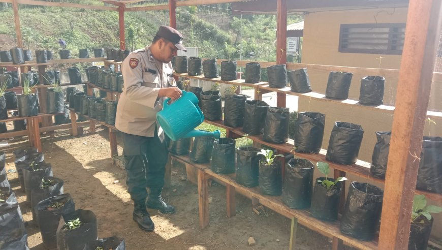 Nusantaraterkini.co, PALAS - Dalam upaya mendukung program ketahanan pangan, Kepolisian Resor Padang Lawas (Polres Palas) melalui jajarannya Kapolsek Sosopan AKP Irmanto beserta Kanit Intelkan Aipda Adrian Hasibuan dan Bhabinkamtibmas Aipda Sukandar melakukan pemeliharaan dan penyiraman tanaman pada Pagar Pitamin Bergizi (P2B) di Lingkungan Polsek Sosopan, Rabu (15/1/2025).