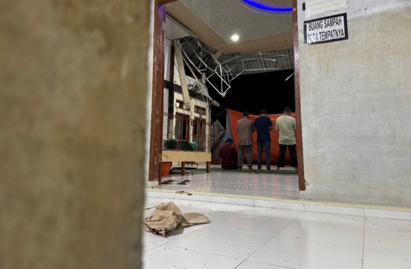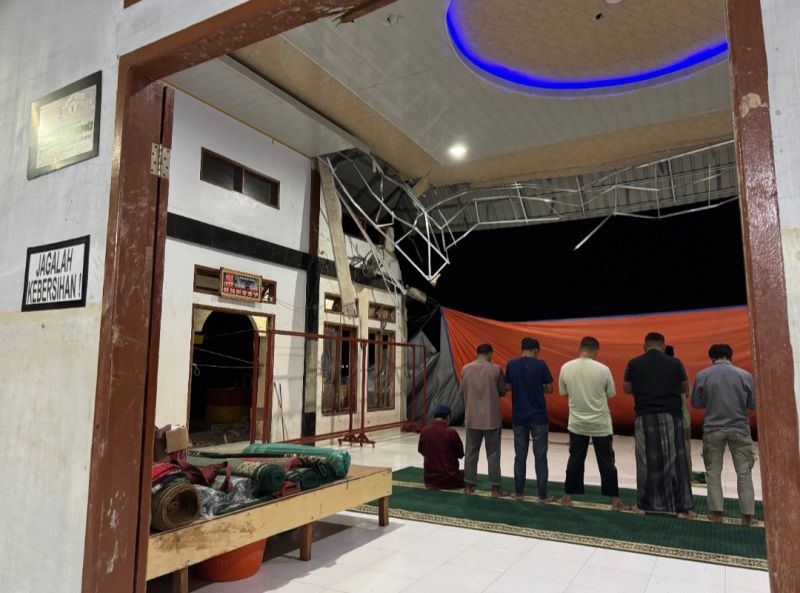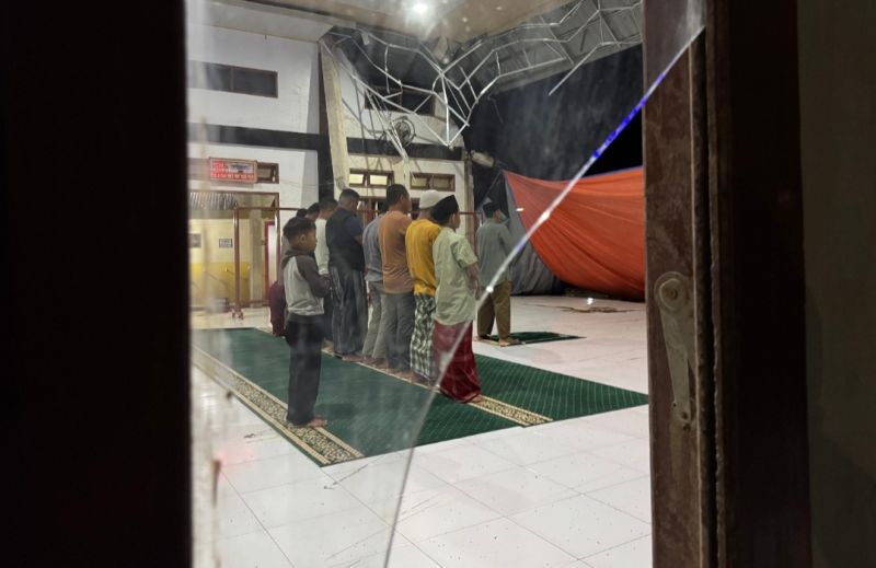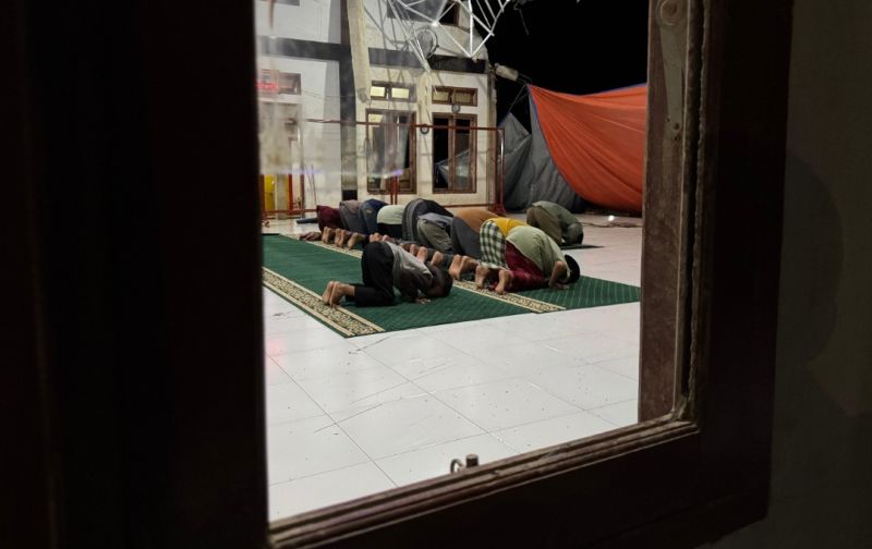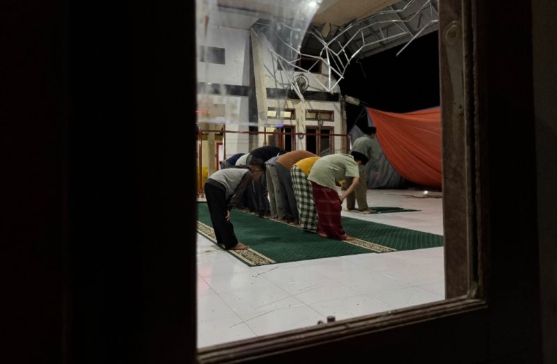 Warga Muhammadiyah yang menjadi korban bencana alam di Tapanuli Selatan (Tapsel) melaksanakan ibadah tarawih 1447 Hijriyah perdananya di dipuing-puing bangunan Masjid Taqwa Desa Garoga yang masih tersisa, Selasa (17/02/2026) malam.
