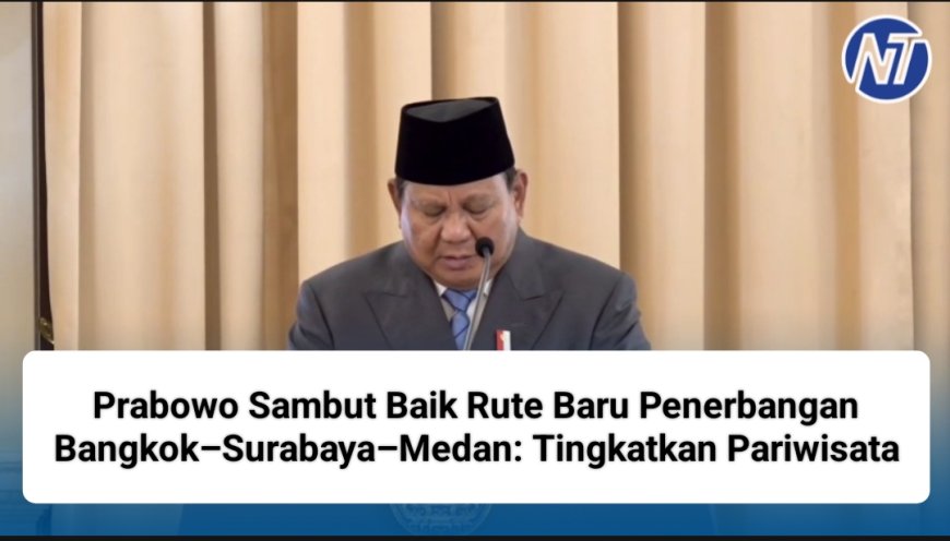 Nusantaraterkini.co, Bangkok — Presiden Republik Indonesia Prabowo Subianto menyambut baik pembukaan jalur penerbangan baru yang menghubungkan Bangkok–Surabaya, Medan, dan Phuket. Langkah ini diyakini akan memperkuat sektor pariwisata kedua negara.